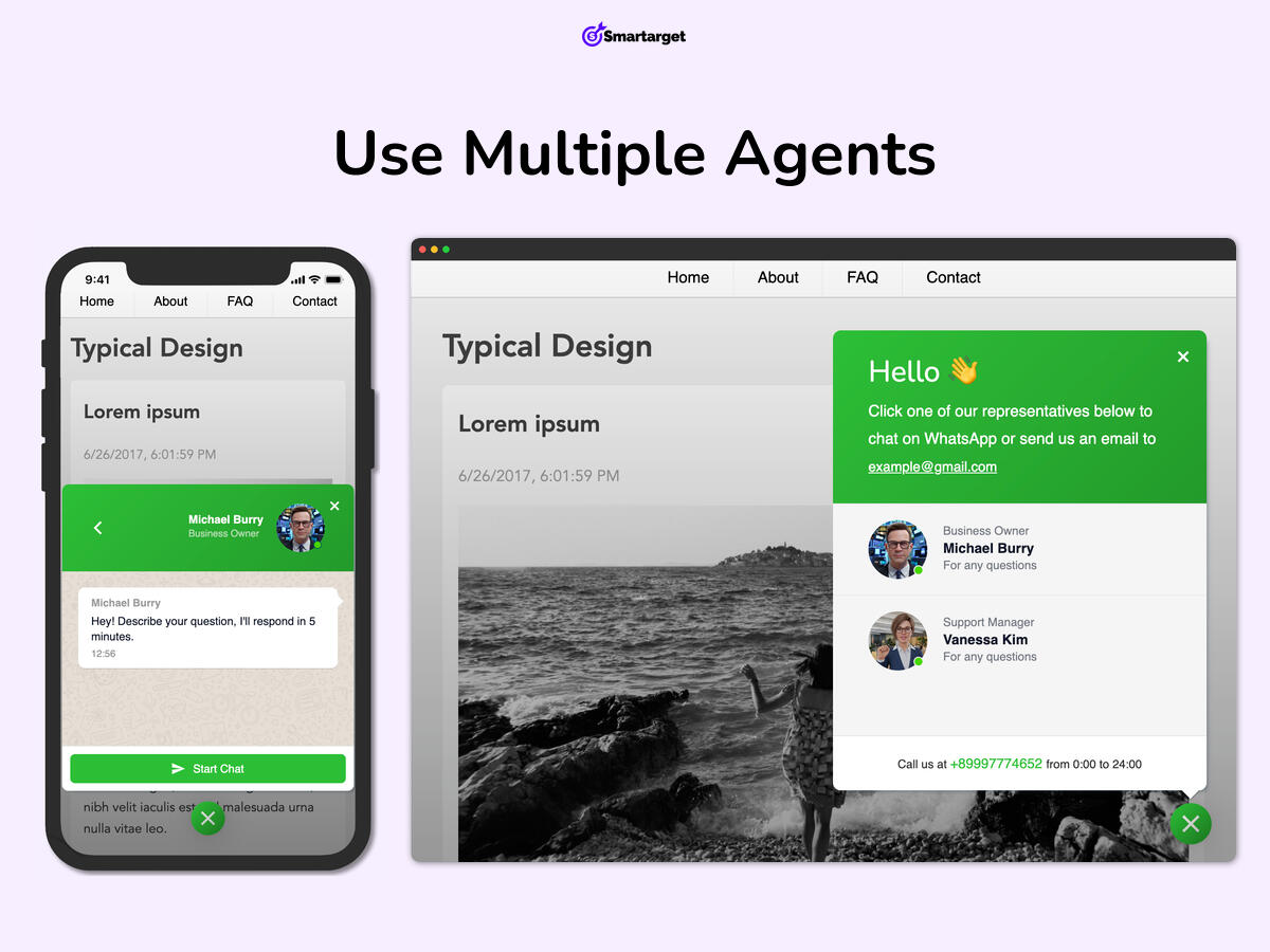 Exiba um ou vários agentes, facilitando a conexão dos clientes com a pessoa certa em sua empresa.