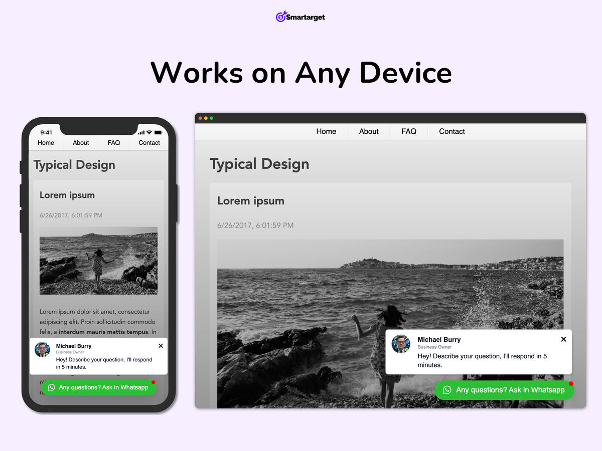O botão de bate-papo do Whatsup para o Kajabi é totalmente compatível com todos os dispositivos, incluindo desktop e celular